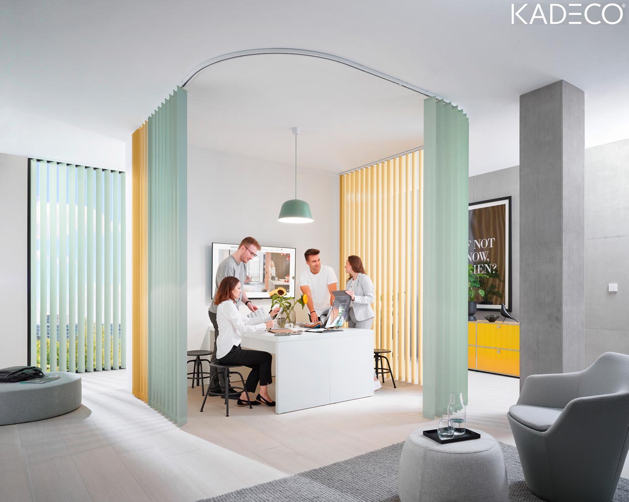 Lamellen sind äußerst variabel in der Licht- und Sichtregulierung, sie können sachlich und dezent sein oder farbenfroh bis plakativ modern. Lamellenoberflächen erhalten Sie in matt, glänzend, bedruckt, strukturiert und perforiert. Durch drei verschiedene Lamellen- breiten und die möglichen Farbwechsel lassen sich sehr unterschiedliche Optiken erzielen. Bei einer Breite von 250 mm erhalten Sie schon fast die Wirkung eines Flächenvorhangs, haben aber wesentlich mehr Möglichkeiten der Licht- und Sichtlenkung.